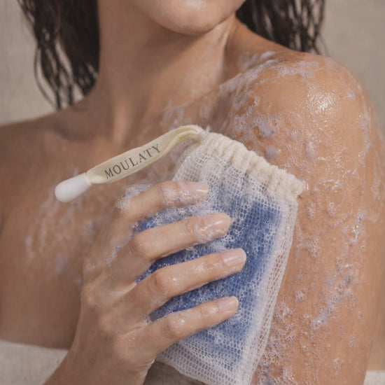 On face: Apply the soap directly onto damp skin and massage gently. On body: Insert the soap into the pouch, create a rich lather, and cleanse. Rinse well and follow with your favourite moisturizer or oil.