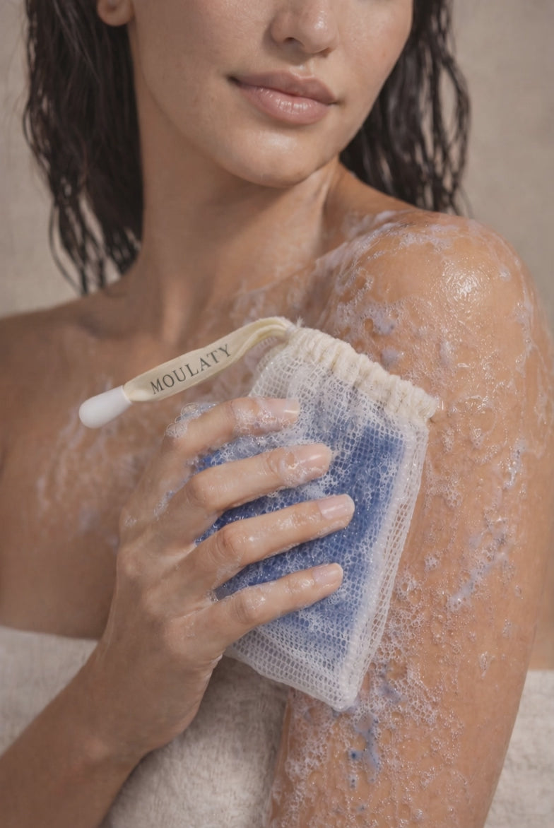 A luxurious Moroccan cleansing bar enriched with Blue Nila, Argan oil, honey, and chia butter.