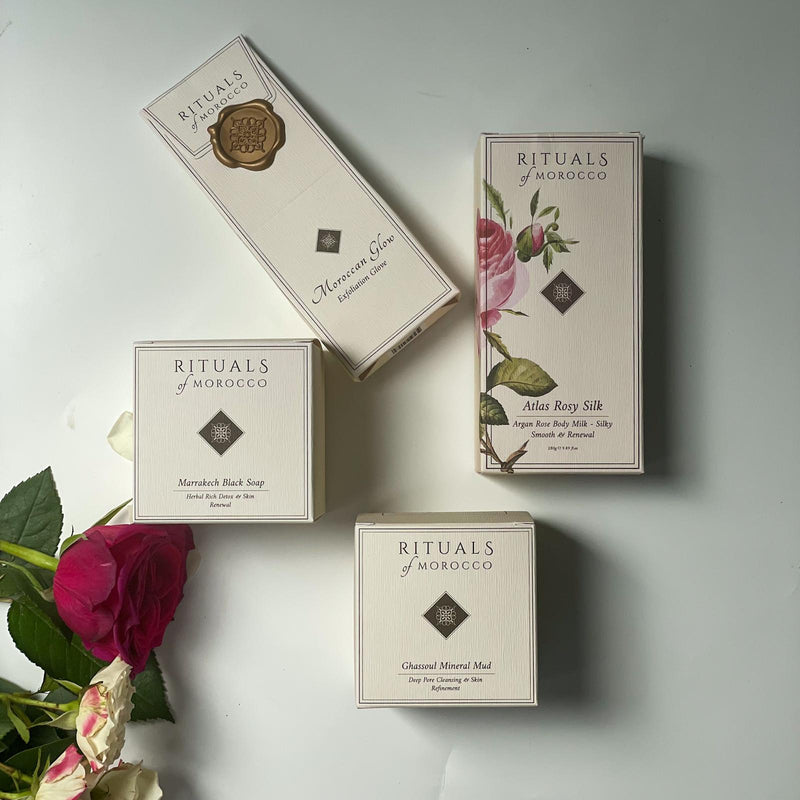 Rinse and scrub with the glove to remove dead skin. - Ghassoul – Detox: Apply the clay mask to face & body. Leave for 10 minutes, rinse off.